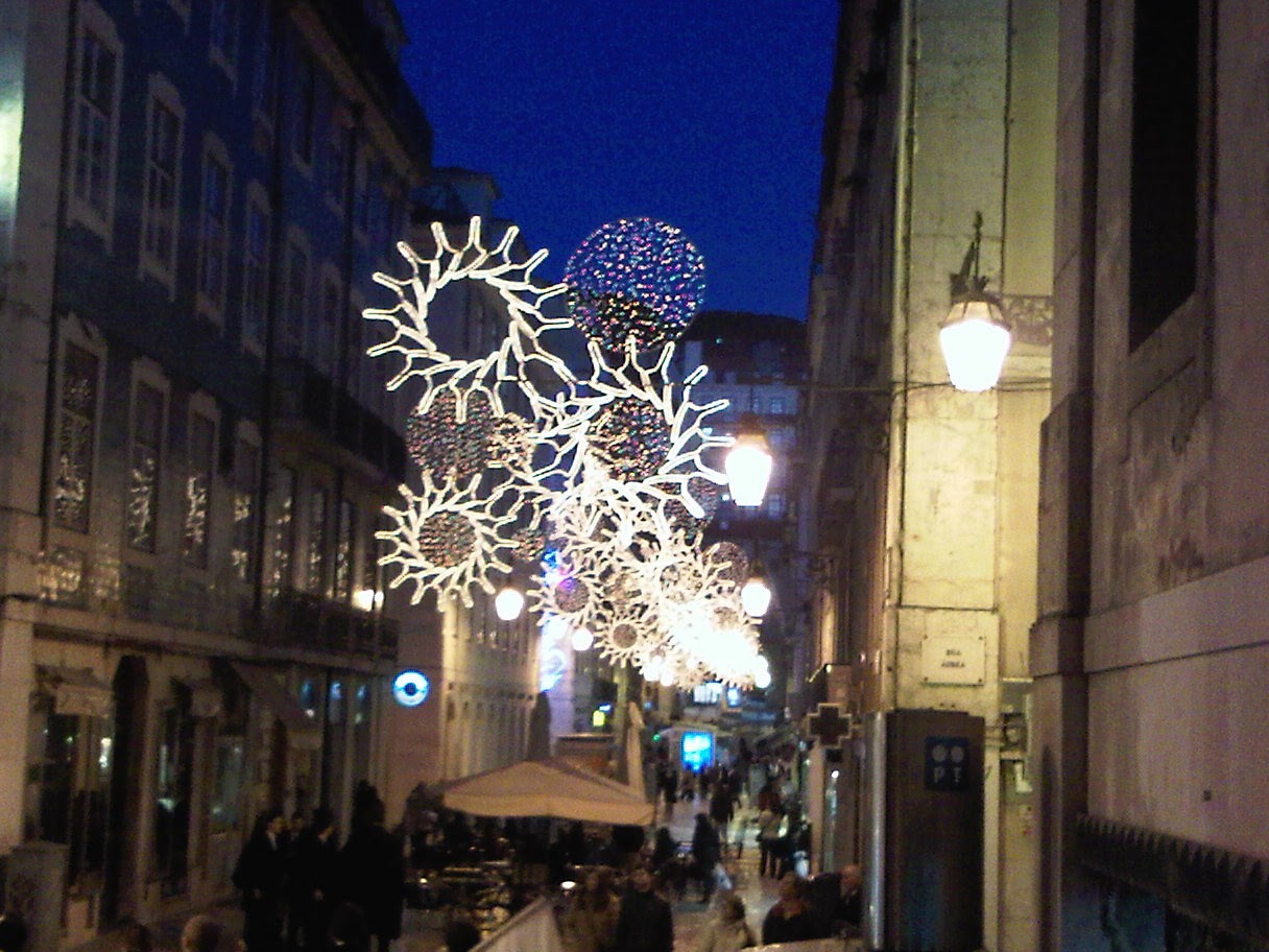 Ruas iluminadas, aletria, cor vermelha, enfeites com brilho, chocolate quente, fritos e bolo rei!
