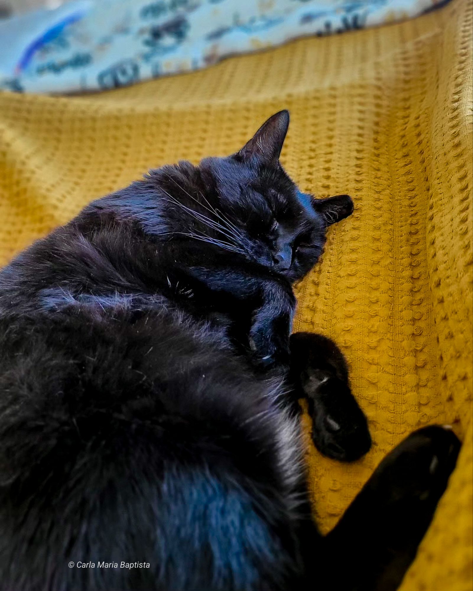 O Jack, o nosso gato preto sénior, entrou nas nossas vidas justamente quando todos nós estávamos a sarar, cada um a carregar a sua própria dor silenciosa. É como se o destino tivesse alinhado os nossos caminhos após a perda, trazendo-nos o Jack como um curador gentil, também ele a carregar o seu luto.