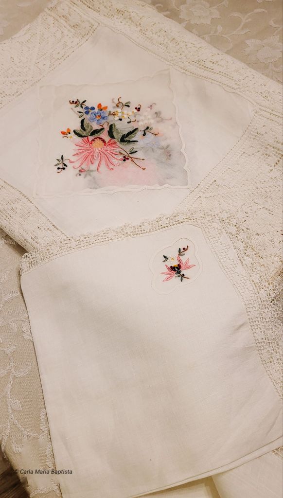 Um bordado numa toalha de mesa, foi tudo o que bastou para me lembrar da fragilidade da vida, do seu desenho delicado e intricado. E, no entanto, dentro dessa fragilidade, há uma força, um poder silencioso que une peças tão distintas: fios coloridos e pacientes entrelaçando-se com quadrados brancos simples, pontuados aqui e ali por rendas de crochet tão finas como um sussurro. A precisão do seu fabrico exige admiração, um testemunho do foco e cuidado vertidos em cada ponto.