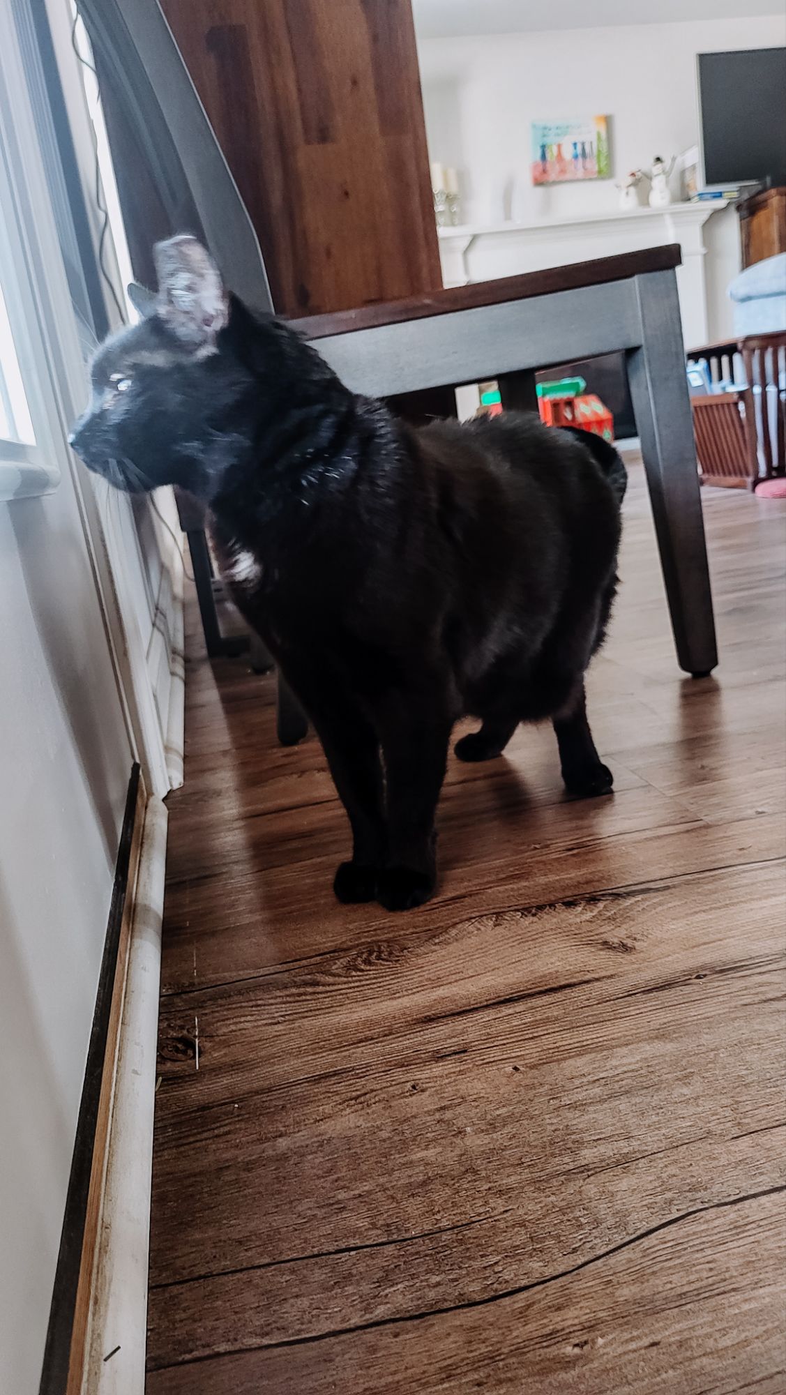 You see, I have my own water fountain. A perfectly good one. But the forbidden water from the living room fountain? Superior. And I will get to it. I’m already positioned by the door, paws ready, eyes locked. The moment it cracks open?