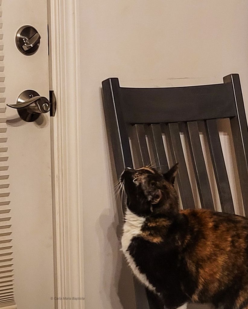 So, I must take matters into my own paws. I need to figure out how to open the door. If I can just get it open… Jack won’t be able to resist the call of the wild. And once he’s out? Well, let’s just say… problem solved.
