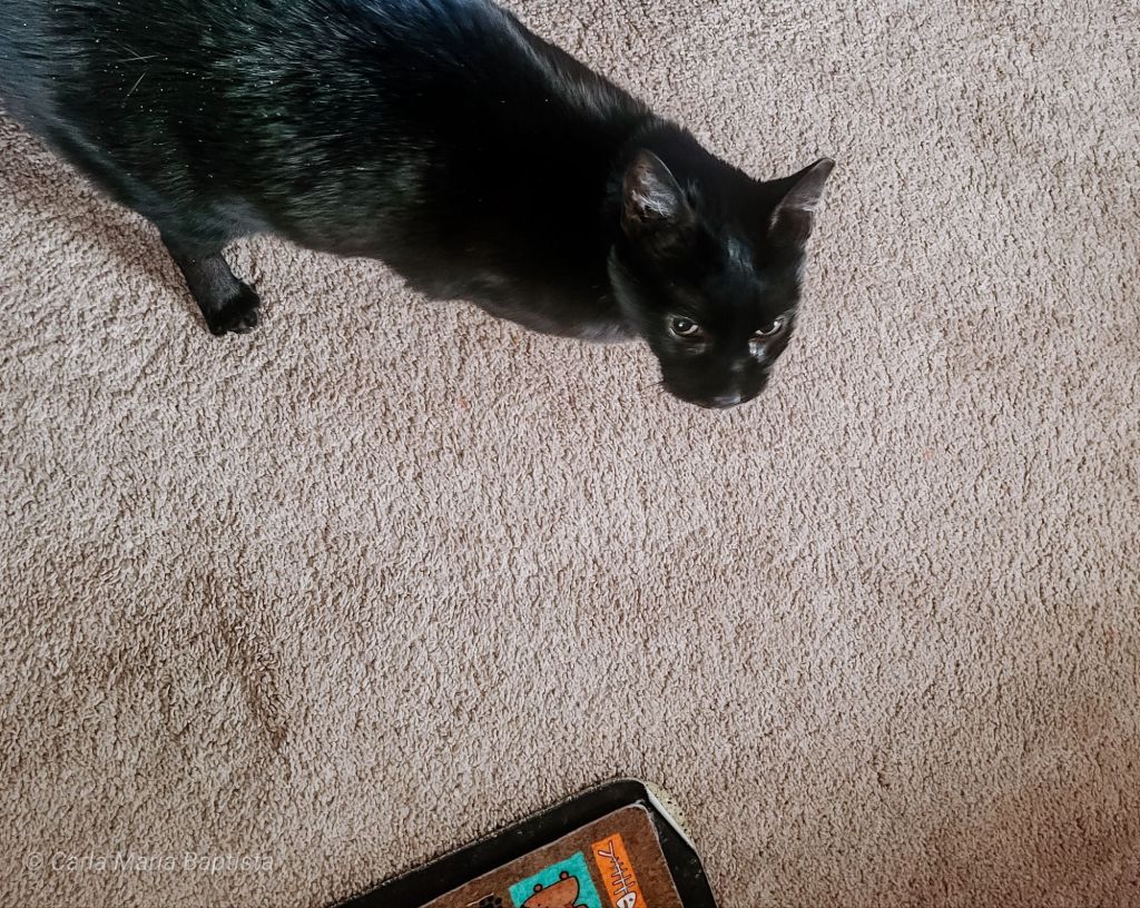 Then, morning came. A dark morning, despite the sun shining (the more I think about it, the morning was actually rainy, but this way sounds better.) My usual grand tour of the house was denied. Instead, I was scooped up—betrayed!—and thrust into the CARRIER. At that moment, I knew: there was no escape.
