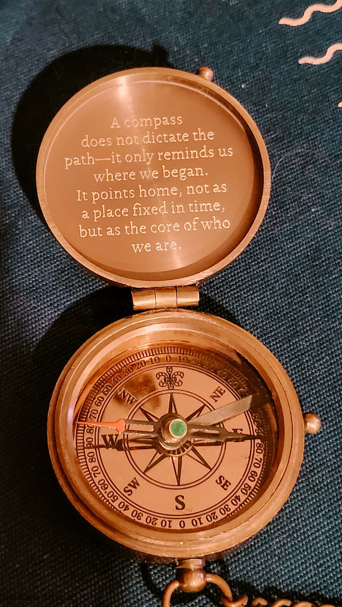 But a compass does not dictate the path—it only reminds us where we began. It points home, not as a place fixed in time, but as the core of who we are. A space where choices are made with clarity, where emotions are tended with care, where faith in the world is restored. A place to rest, to heal, to realign our steps with the values that define us.