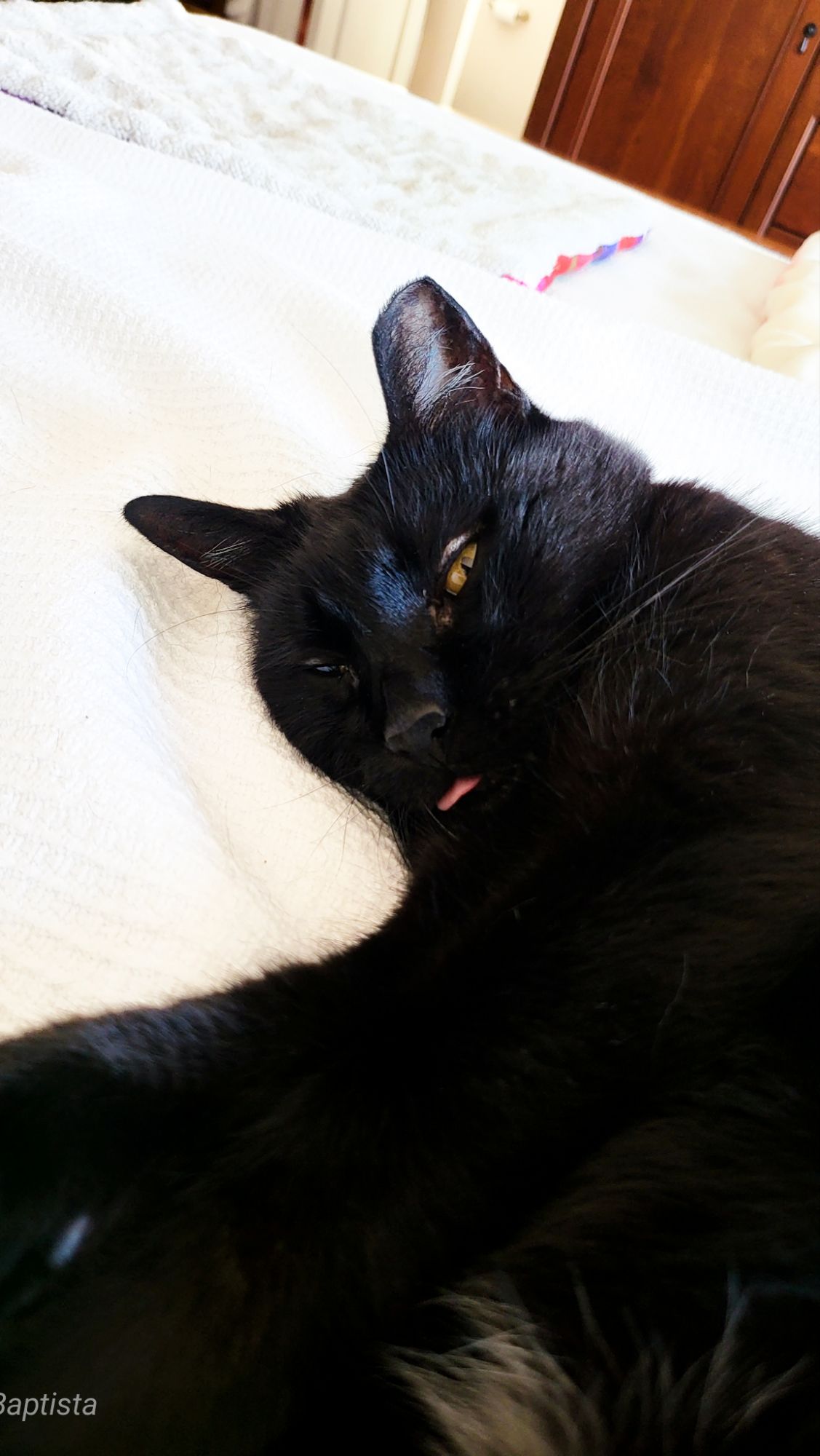 Ela já começava a aquecer (notei pelos suspiros dramáticos), então decidi dar-lhe um passeio refrescante: umas voltas pela sala, uma passagem estratégica no alpendre fechada (ai, como eu sonho com o grande mundo lá fora — um dia hei de escapar… aguardem!), depois de volta para dentro e escadas abaixo rumo à cave outra vez!