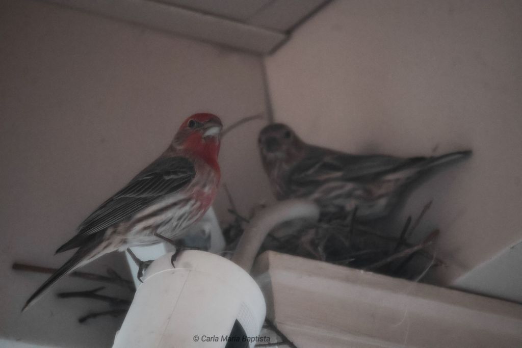 Quando finalmente a família Tentilhão se instalou, começámos a conversar. Com a janela aberta, trocámos uns miaus e chilreios. Fiquei a saber que são tentilhões-domésticos, bastante comuns por aqui, mas ainda assim encantadores. O Sr. Tentilhão disse-me que a companheira insistiu em mudar para o lado oposto da varanda este ano, mas ele não quis. Disse que este lado era mais seguro. Mais acolhedor. Com melhor sombra e menos vento e chuva. E ainda tinham acesso fácil a comida e água.