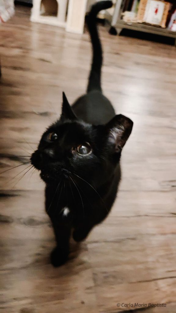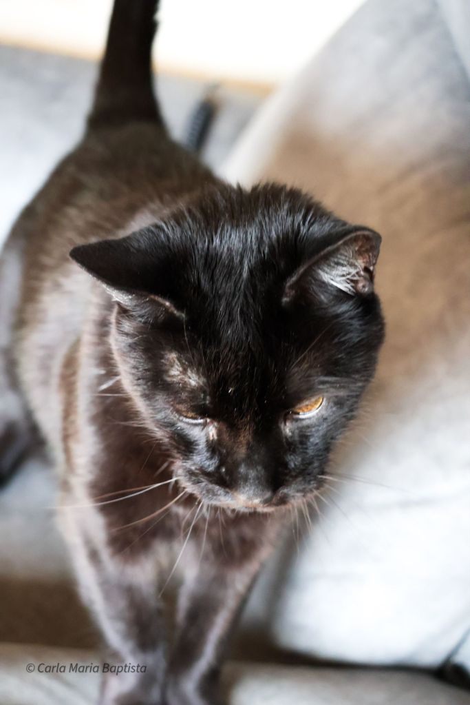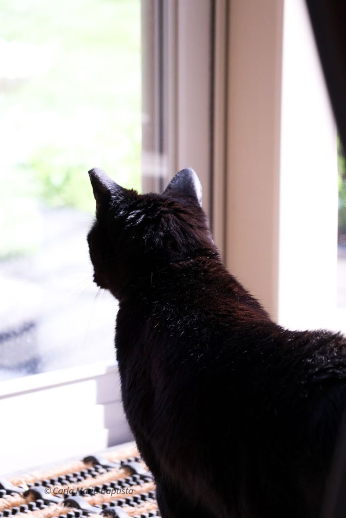 No dia seguinte, a Smores continuava atenta. Quando estive um bocadinho no alpendre de trás (como eu adoro o cheiro da natureza lá fora, sinto-me uma pantera quase totalmente preta a explorar campos distantes), ela veio a correr até à porta de vidro para me espreitar e verificar se eu estava bem. Ficou ali, a olhar e a admirar. Tenho quase a certeza de que também viu a pantera em mim.