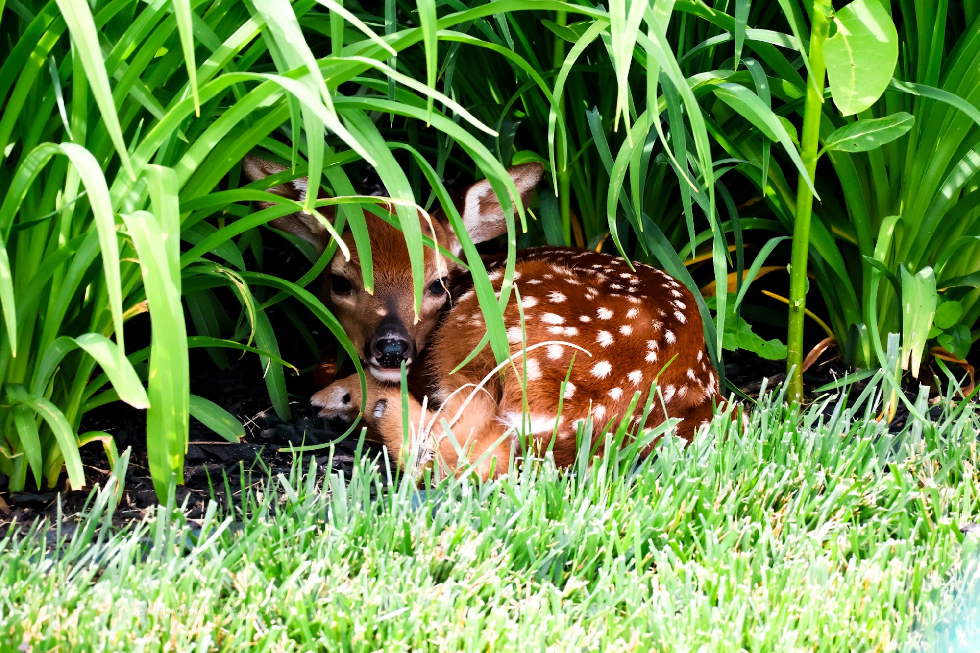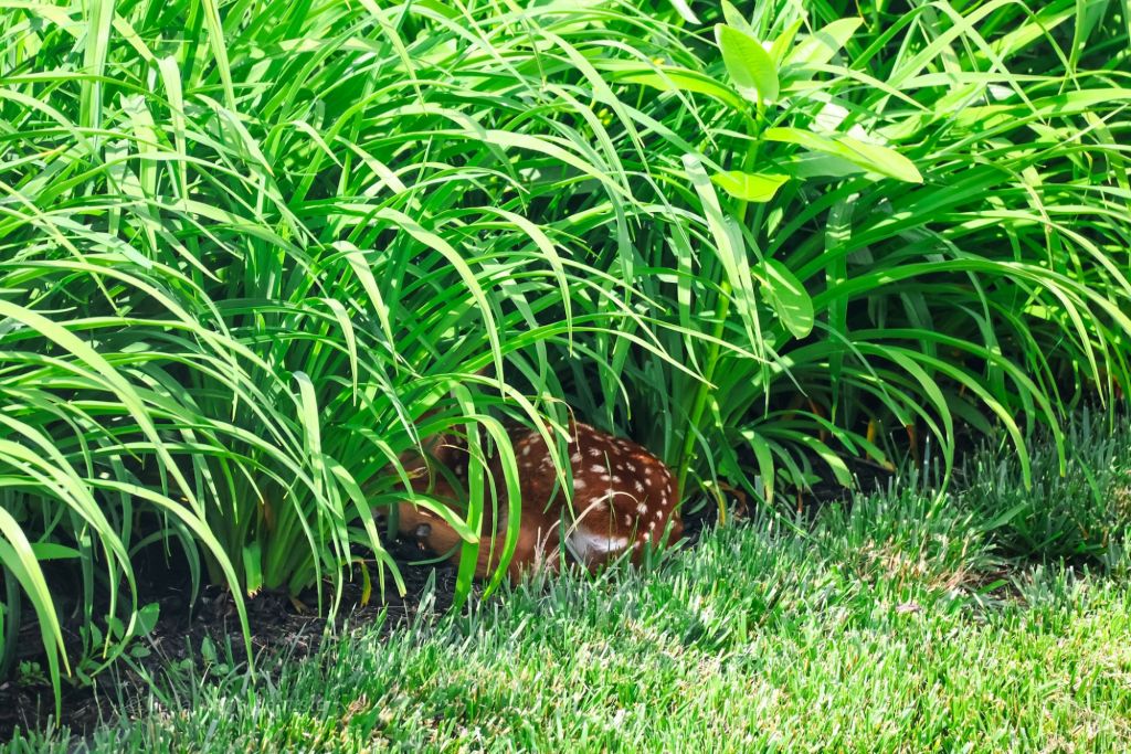 A flicker. A shimmer in the grass. Something soft and fawn-colored curled beneath the hedge.