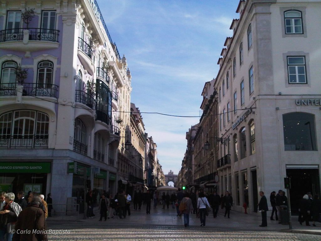 Se em vez de subires em direcção ao Chiado decidiste caminhar para sul pela Baixa, descendo a Rua do Ouro e a Rua da Prata — nomes herdados dos ofícios que ali prosperaram, logo chegarás à Praça do Comércio, onde a cidade se abre ao rio. O sol brilha com força aqui, onde a terra encontra a água e os elétricos passam a tilintar, como canções de embalar antigas.