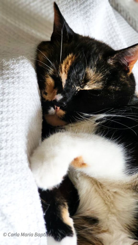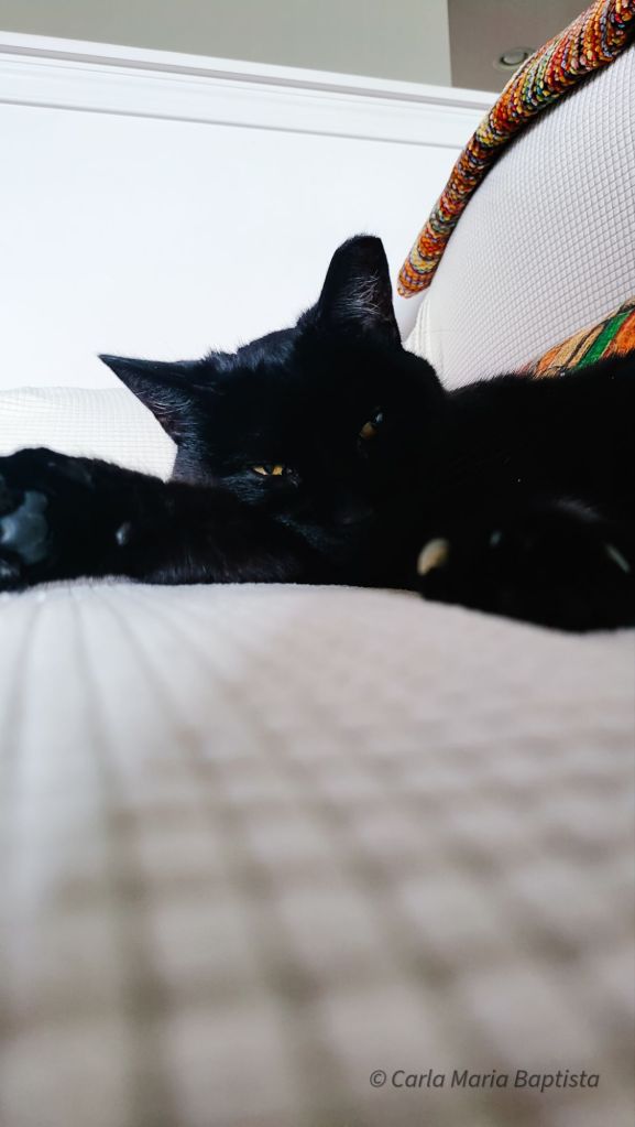 E eu? Enroscada no meu canto do sofá, os pés aconchegados numa manta macia, uma chávena na mão. Nem sequer ousava mexer-me. O momento não me pedia nada além de estar ali e sentir a presença dos meus dois companheiros felinos que, durante tanto tempo, existiram em lados opostos de uma porta.