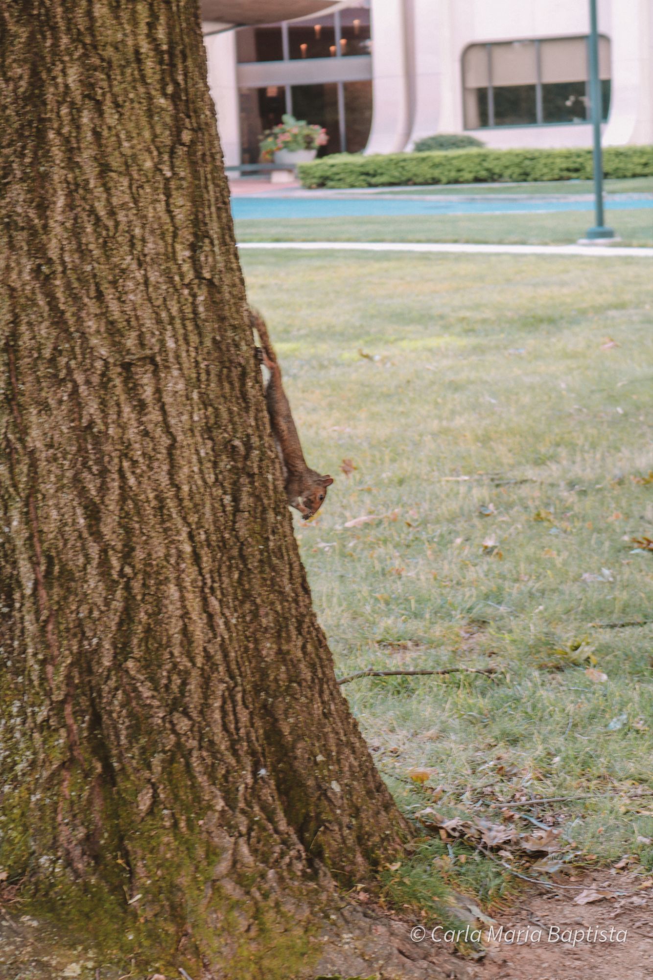Por isso, bem cedo, antes dos estudantes com as mochilas, dos carrinhos de manutenção, dos guaxinins dorminhocos ou dos joggers com auriculares, saiu a correr para reunir mantimentos. Planeava ir mais longe do que o habitual, até ao outro lado do campus, onde havia menos esquilos a fazer compras. Melhor selecção. Nozes de primeira.