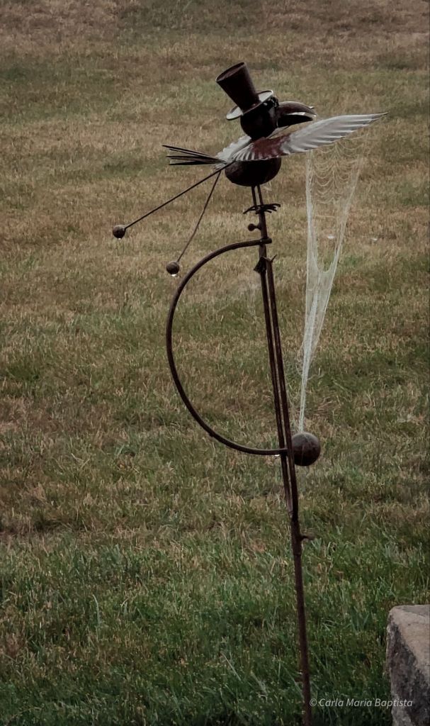 Esta estação tem sido estranha, construções a abalar o ar, menos flores e adornos, visitantes diferentes. O silêncio pode ser conforto, mas também deixa um eco vazio. Não sei se verei outro Outono. O meu poleiro enferruja e eu também sinto o peso dos anos. Ainda assim, quando o frio se aproximar, espero ser convidado outra vez para o calor da casa. Talvez o Sapo Sorridente venha comigo desta vez, também ele já mostra a prata da idade, e a neve não lhe faz bem.