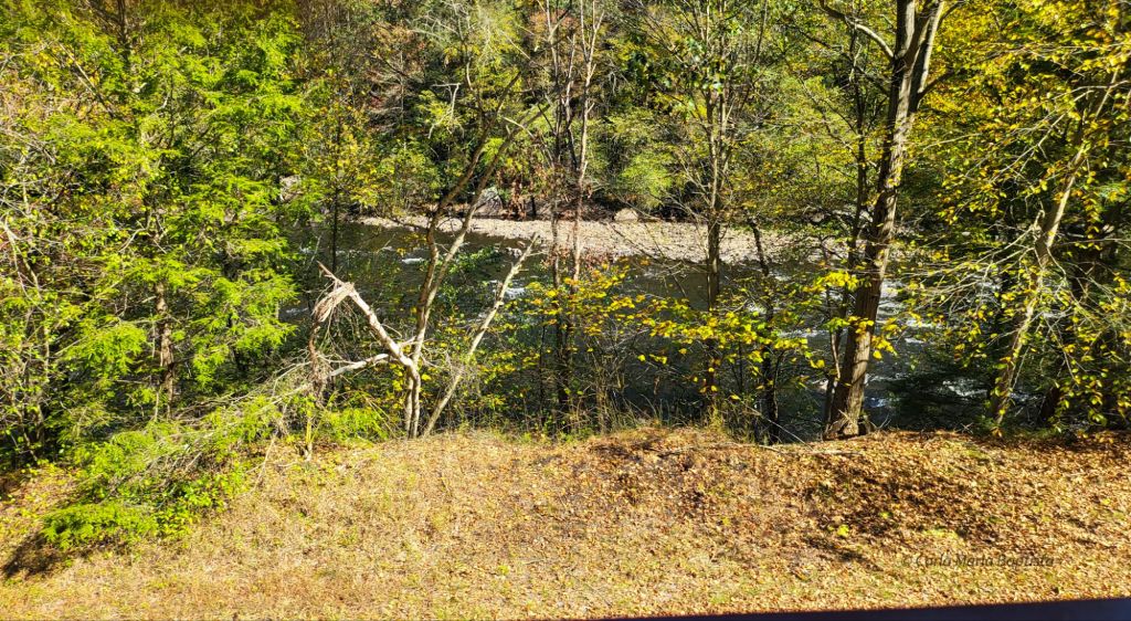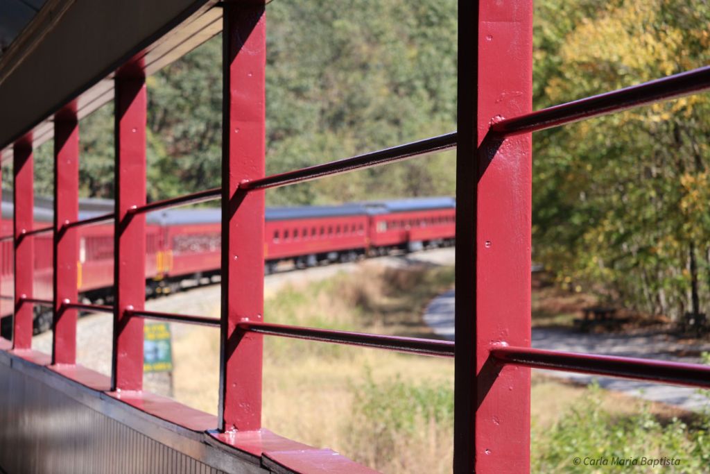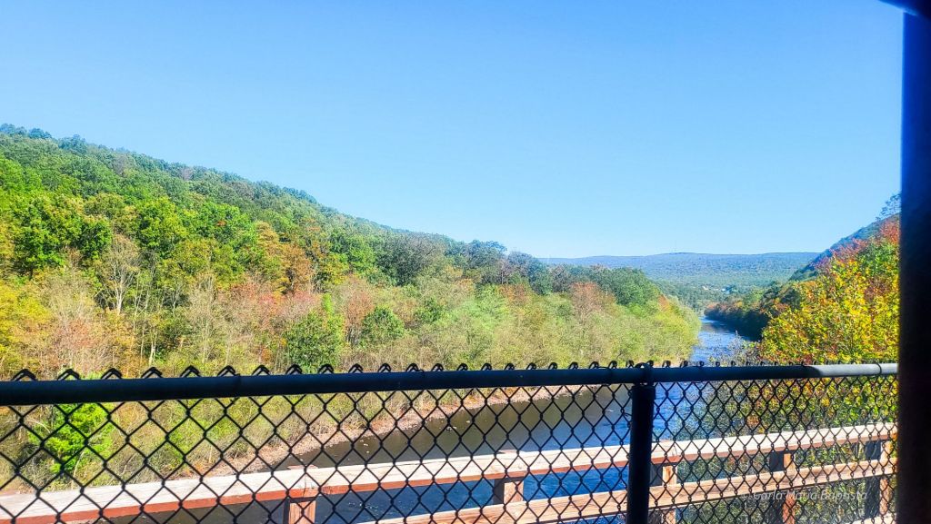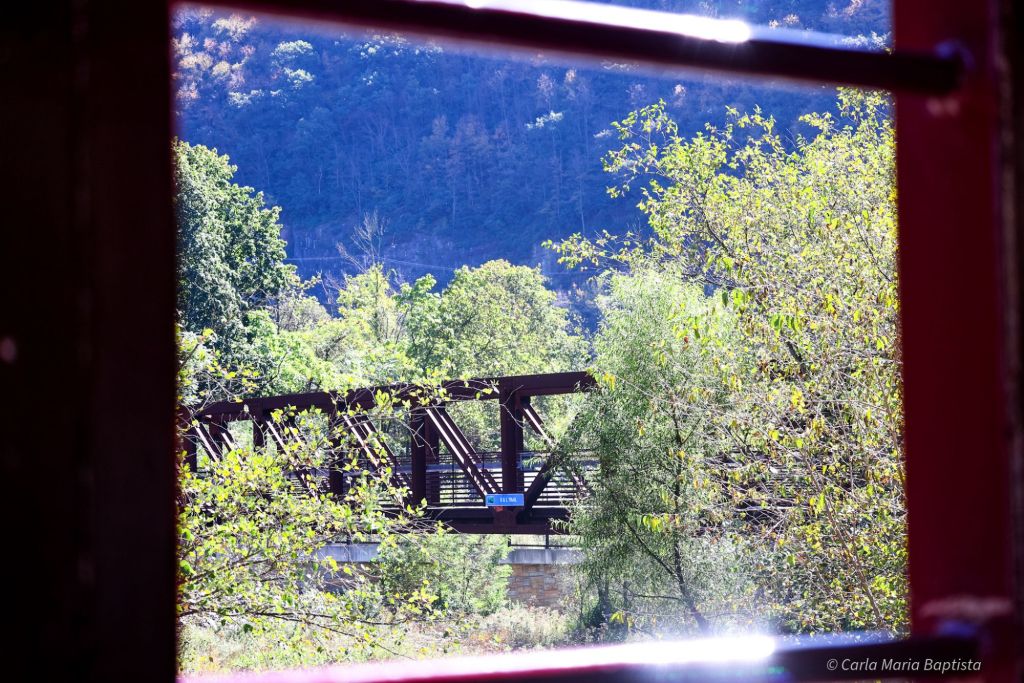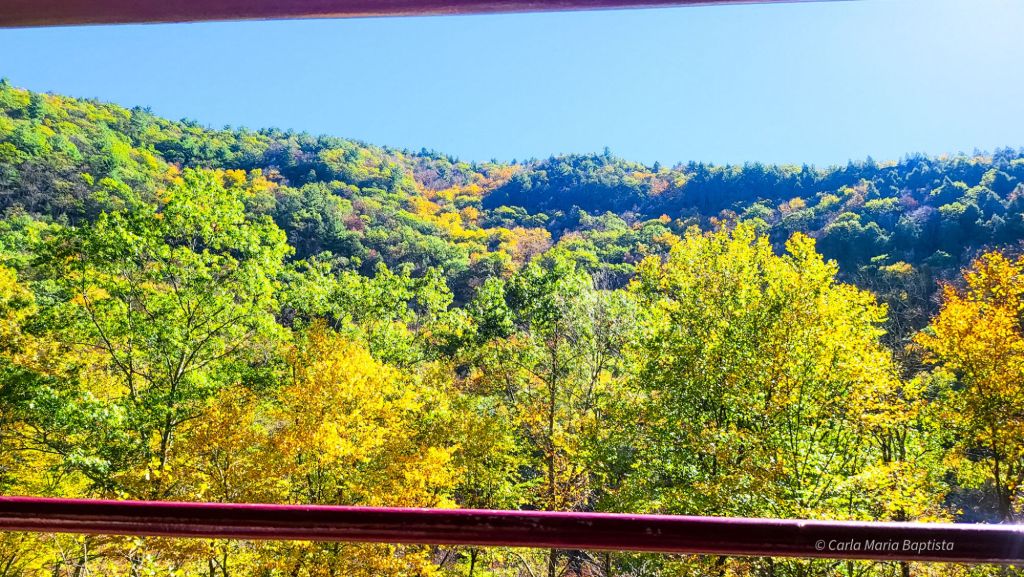 Um dos pontos altos da visita foi o Lehigh Gorge Scenic Railway, conhecido como Foliage Train Ride durante a temporada de Outono. HĂĄ algo intemporal em embarcar num comboio antigo, ouvir o suave ruĂdo das carruagens e ver a paisagem a desenrolar-se enquanto deslizamos pelos vales e ao longo do rio.