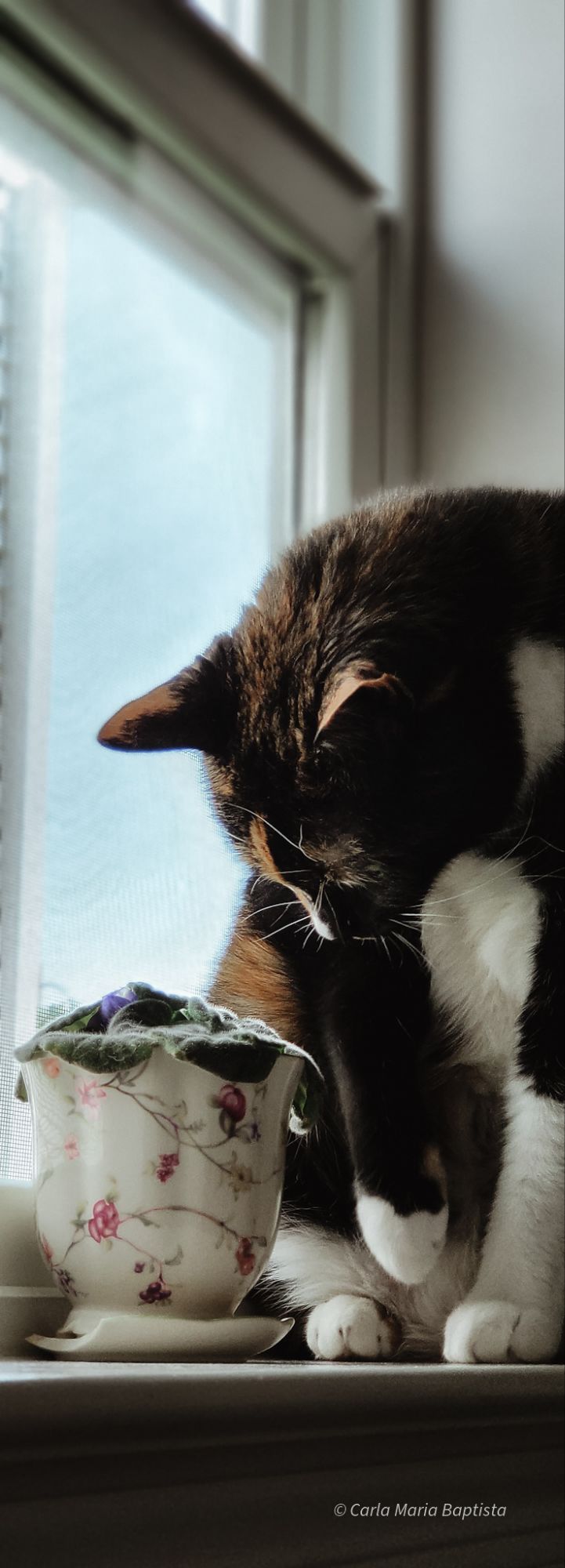 A Mamã, sensata como sempre, mudou a violeta para um daqueles raros lugares inalcançáveis. Uma decisão sábia, embora eu sinta a sua falta.