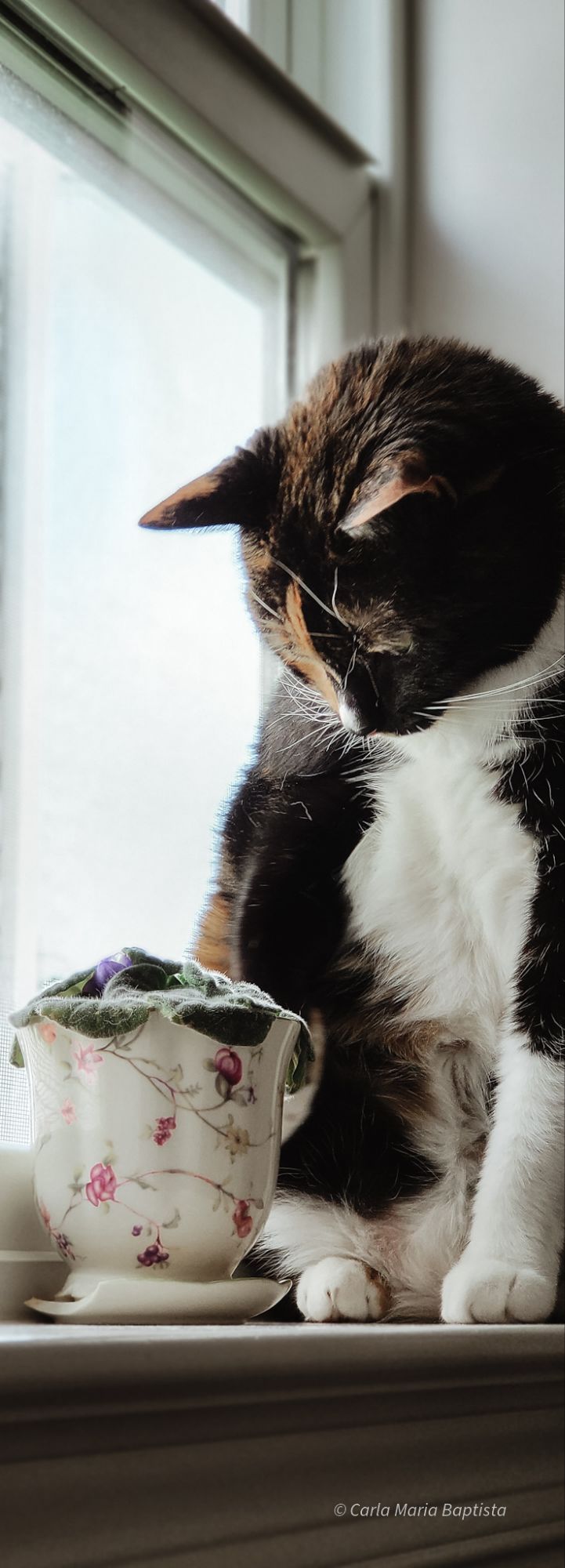 Here, I explore freely: a sniff here, a nibble there. I know my human — we have an understanding. Everything in this garden is cat-approved. Well, almost everything. There are perhaps two places in the entire house beyond my reach — though we both agree, quite politely, that I could reach them if I truly wished.