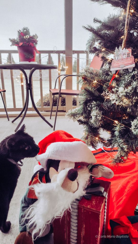 I had just stepped outside to admire my Christmas tree when I ran into this little fellow — I’m pretty sure he’s one of Santa’s helpers. So of course… I asked what I need to do to join the team next year.
