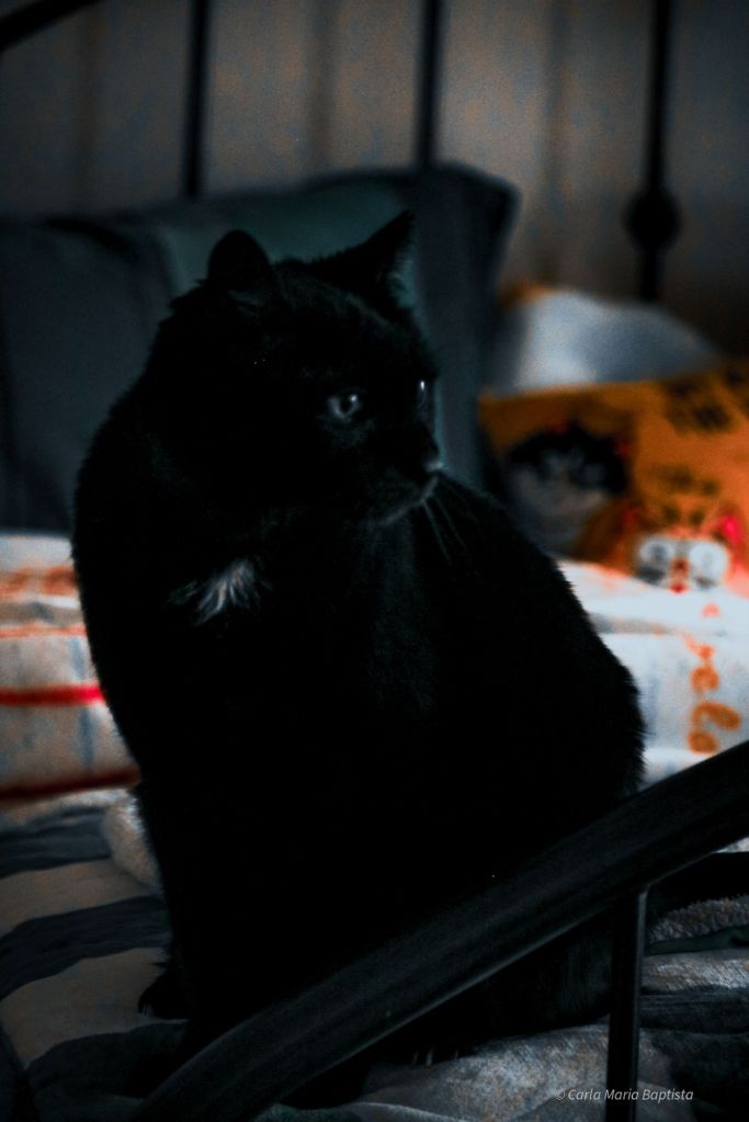 Mas escutem, se eu fosse um gato branco, perdiam-me logo. Mas a mim, um gato preto?! Num mundo branco de Inverno?
