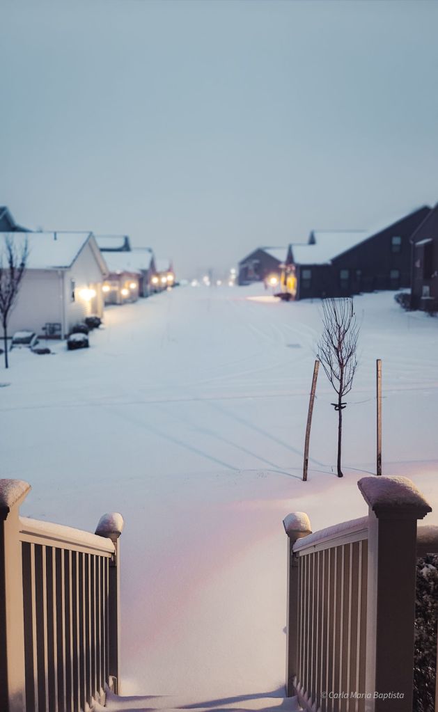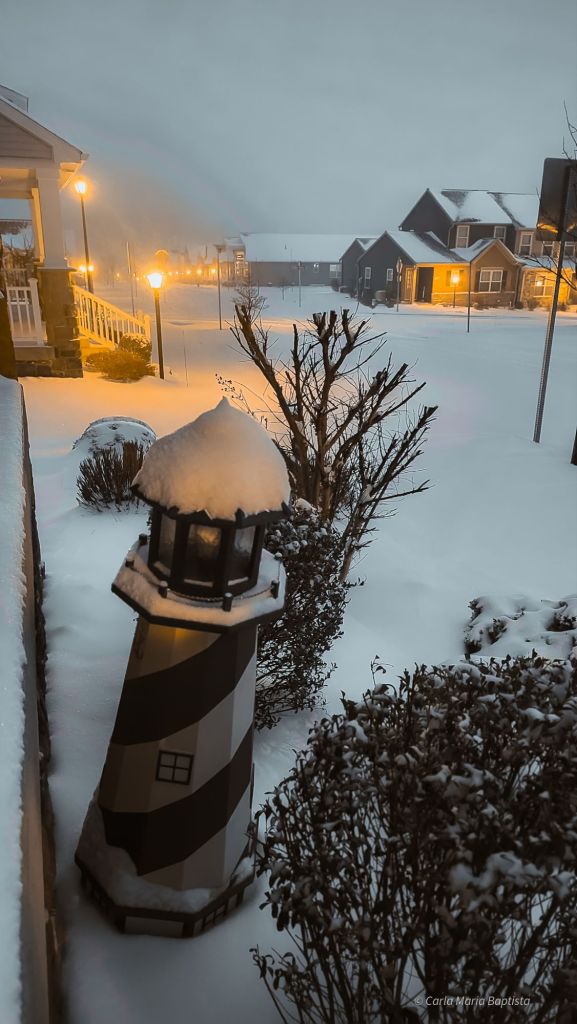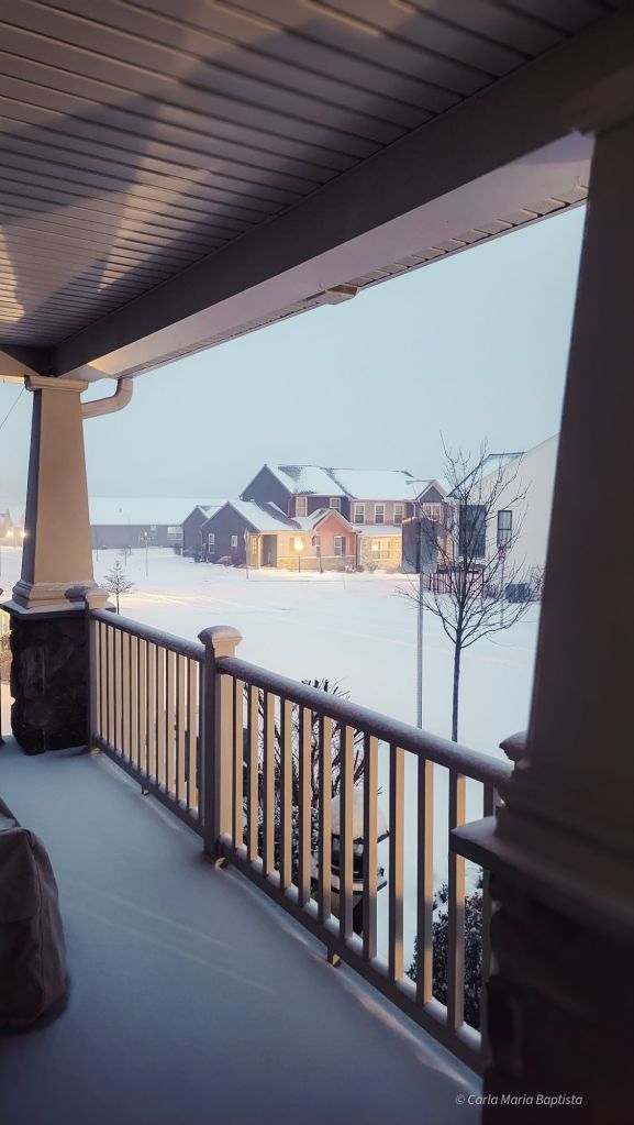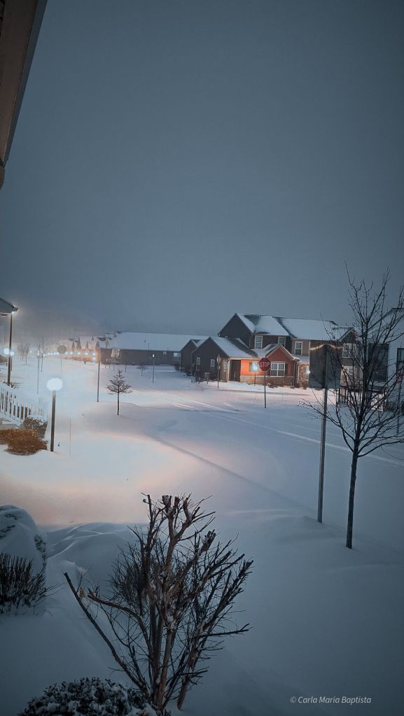 E aqui estamos nós, no meio da tempestade. Neve por todos os lados.