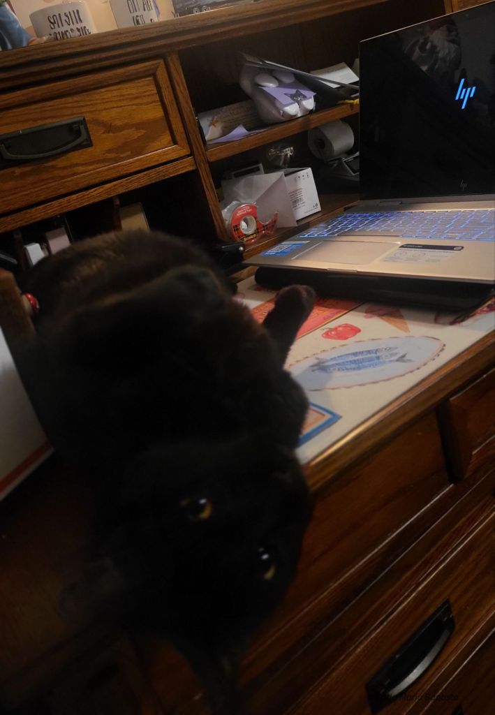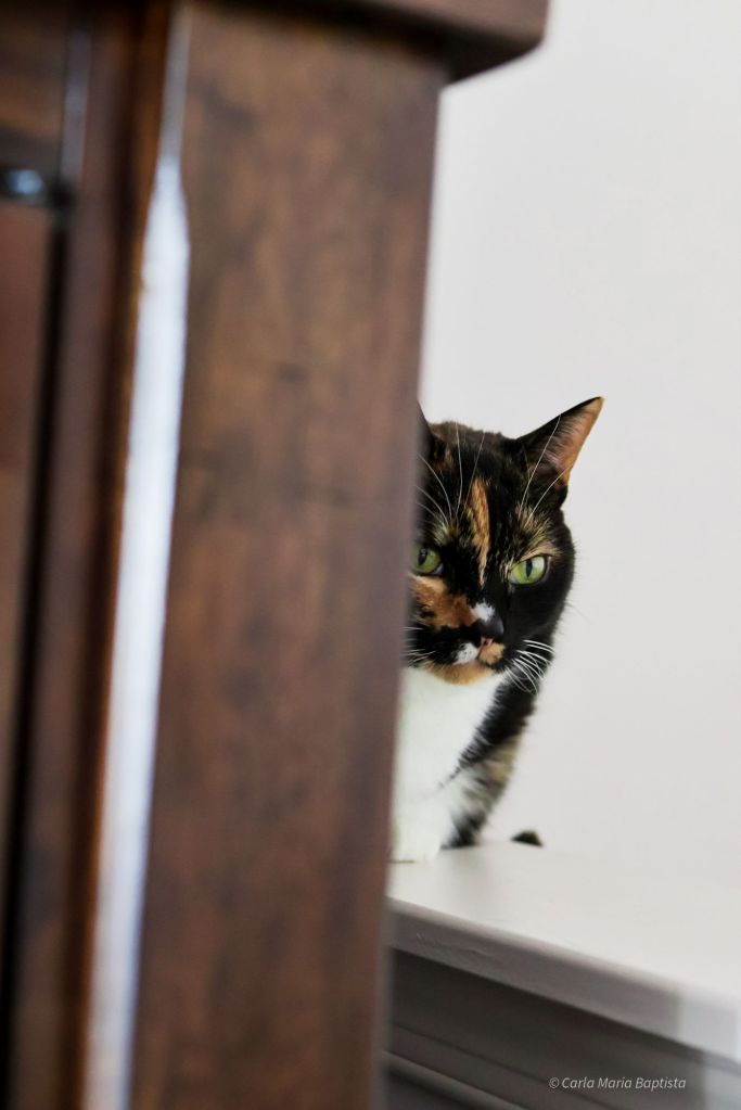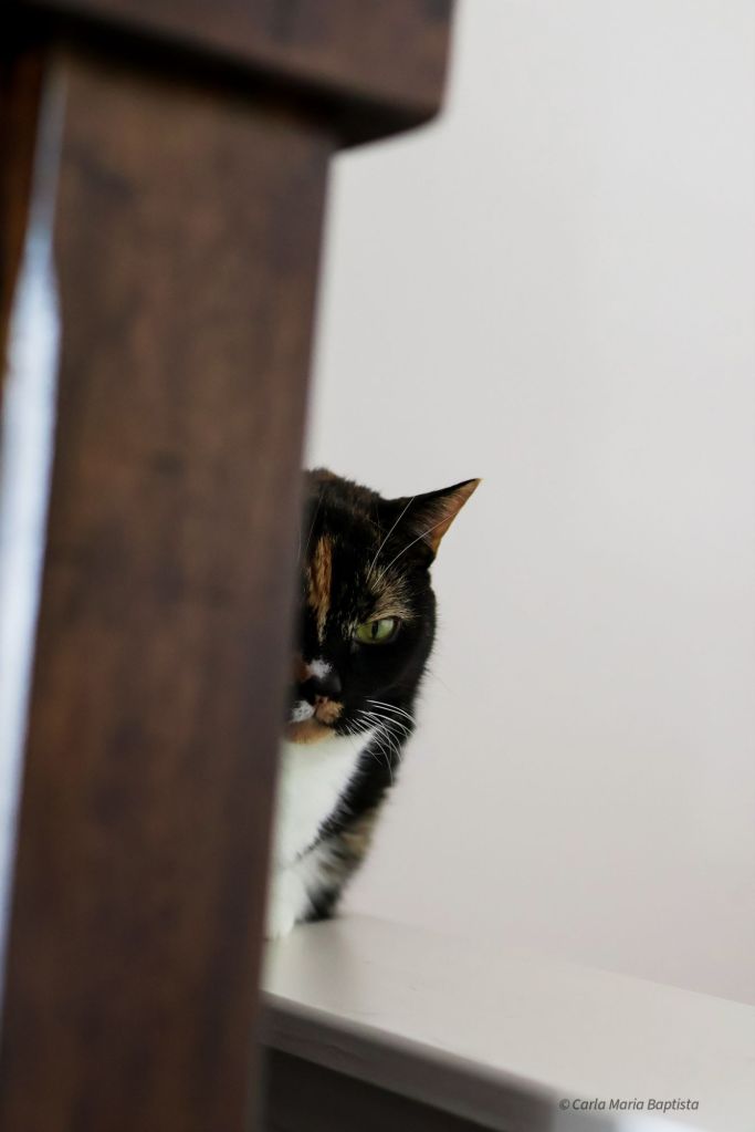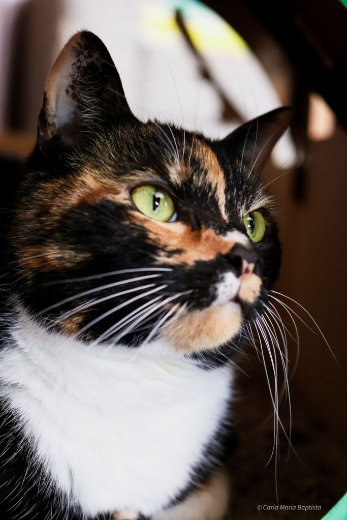 She positioned herself directly against Mommy’s legs. Full calico deployment. Maximum surface area. Tactical fluff.
