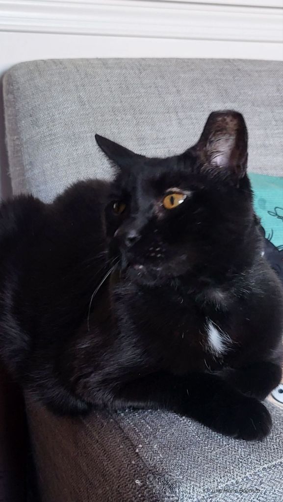 Now before you gasp and drop your kibble, let me explain. I am a very reasonable gentleman. Almost entirely black, save for two tiny white constellations—one on my chest and one on my belly—clearly placed there by the universe to remind everyone that I am balanced and wise.