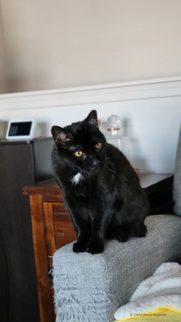 Antes que fiquem chocados e deixem cair o vosso croquete, deixem-me explicar. Eu sou um cavalheiro muito razoável. Quase totalmente preto, excepto por duas pequenas constelações brancas, uma no peito e outra na barriga, claramente colocadas pelo universo para lembrar toda a gente de que sou equilibrado e sábio.