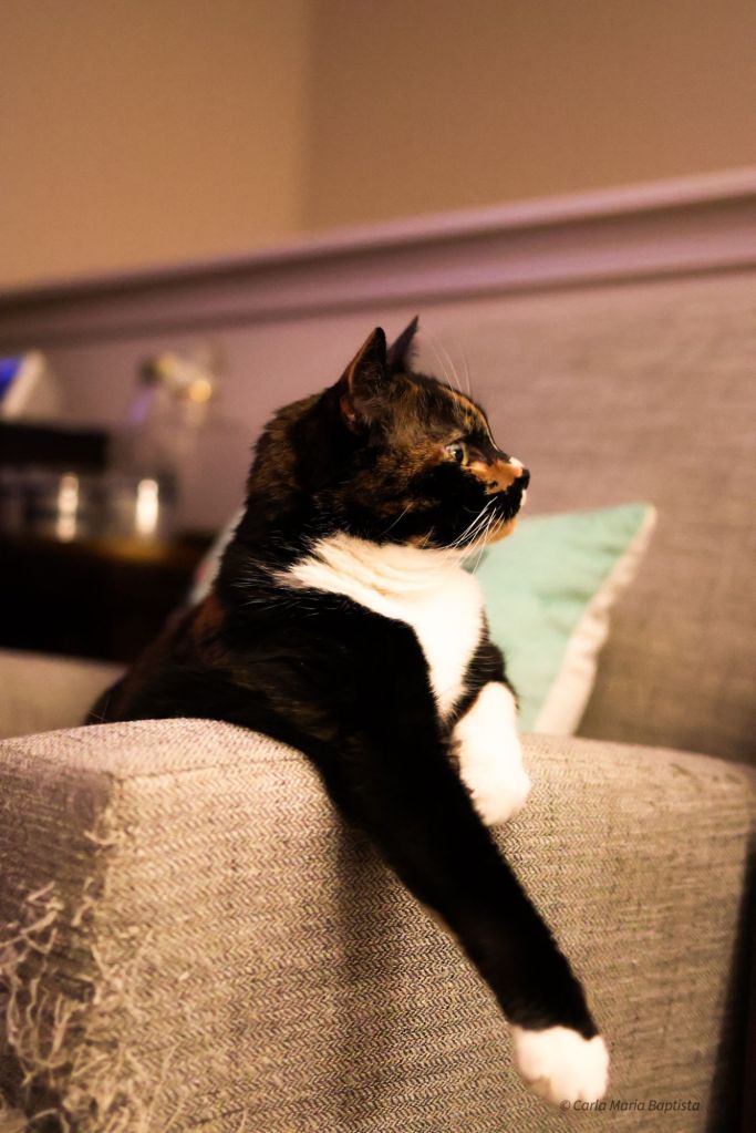 When his energy rises, mine rises too. And as a calico of refinement, I prefer to avoid unnecessary combat scenarios.