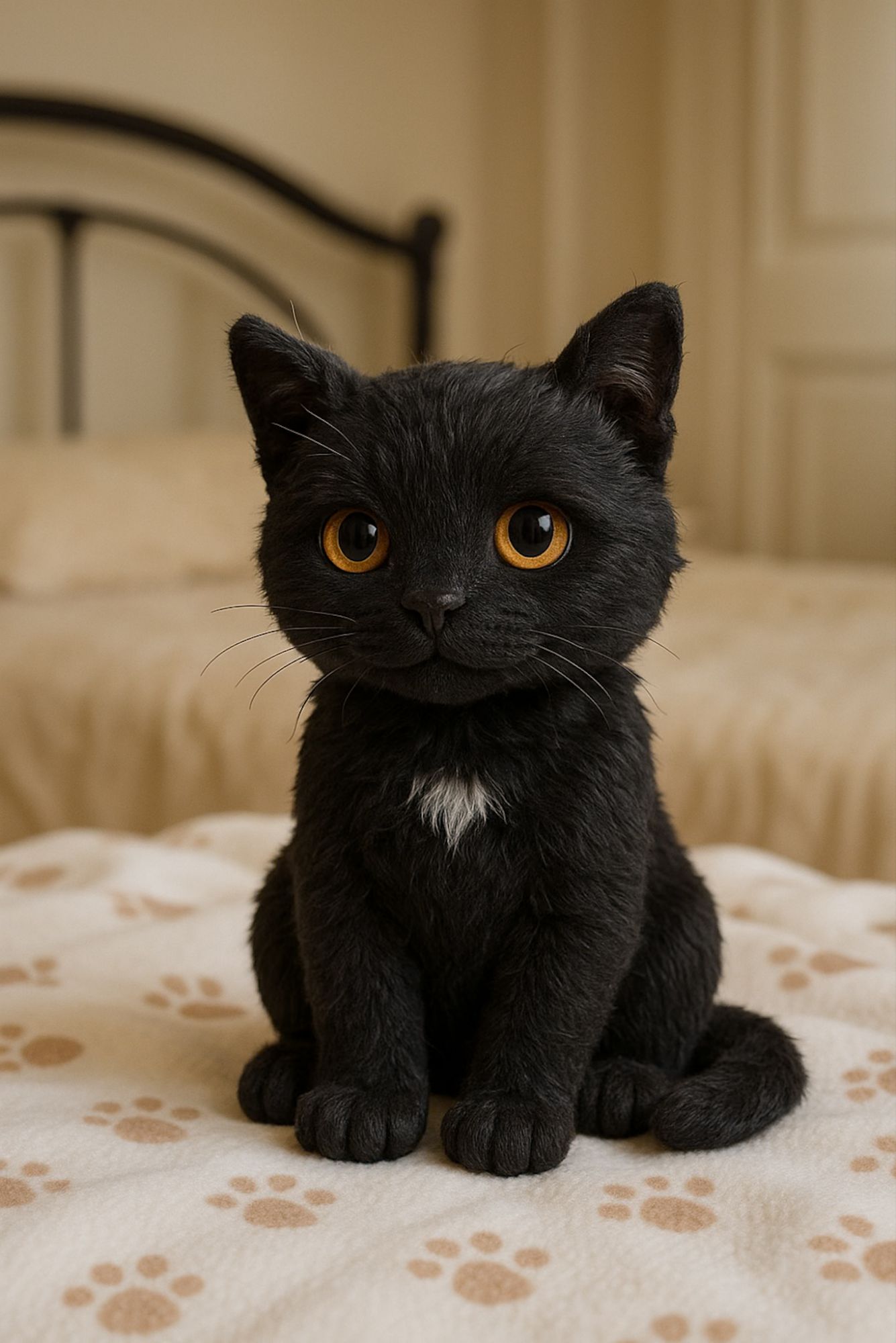 Though he’s mellow and mindful, Jack has his moments—zipping through the house, toppling things over, and accidentally turning himself into a one-cat comedy show. He’s a bundle of warmth wrapped in a silky black coat, with two tiny white spots you might miss unless you know where to look.