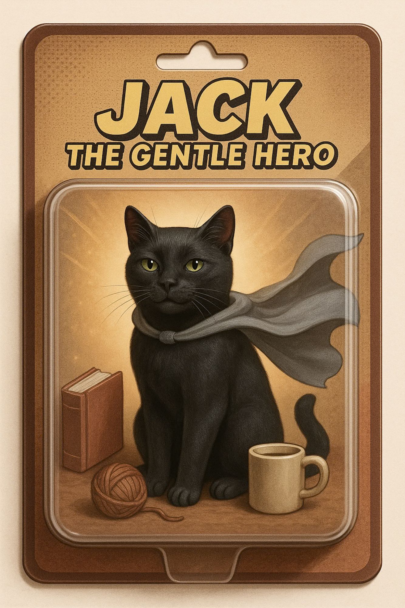 Jack is the gentle, wise elder of the duo—a sleek (almost) black cat with a calm soul and a heart full of curiosity. While he brings serenity to the home, Jack also has a playful side that leads to the occasional comic mishap (think knocked-over items and accidental zoomies). He’s affectionate, observant, and always ready for his close-up.